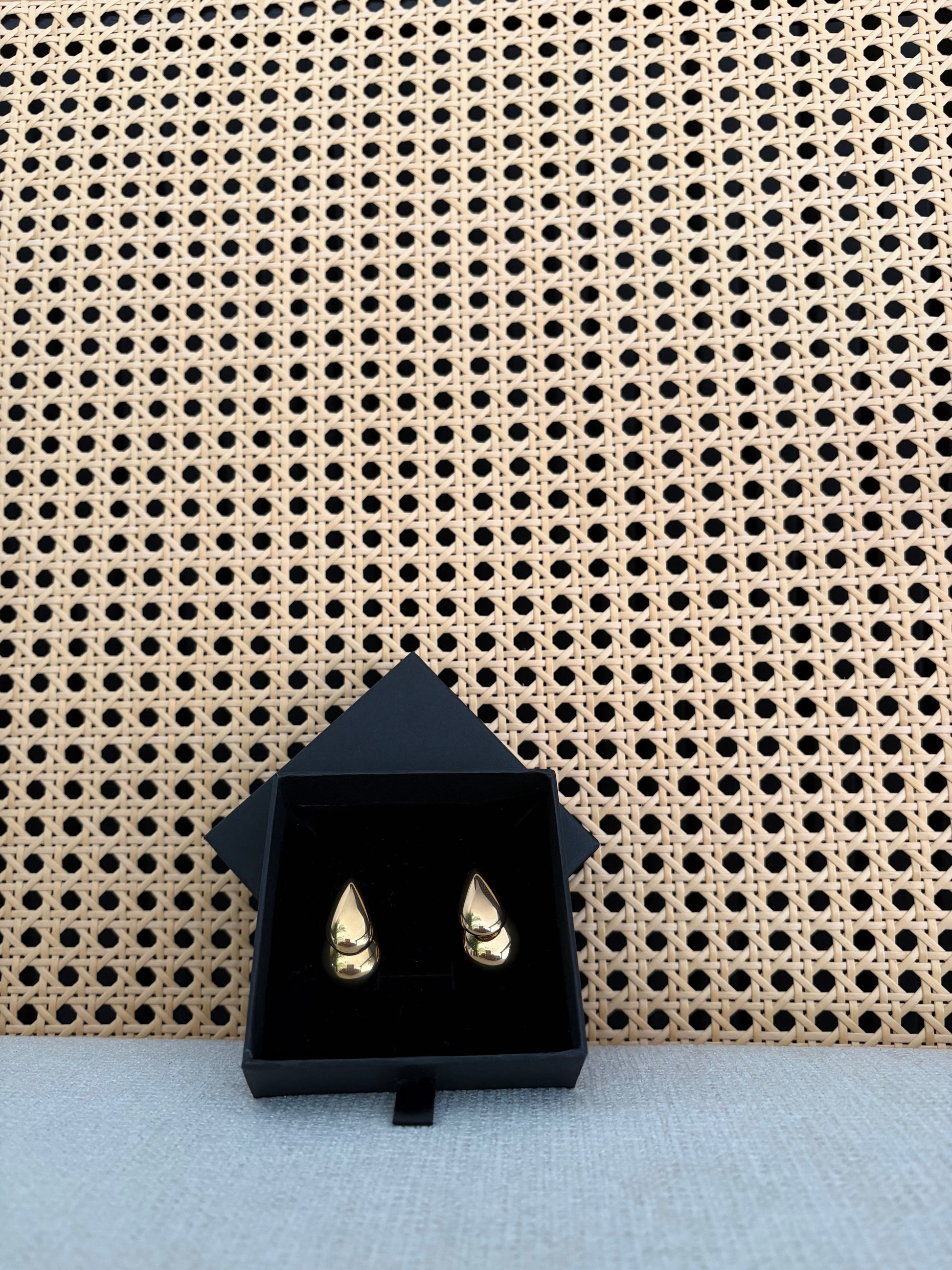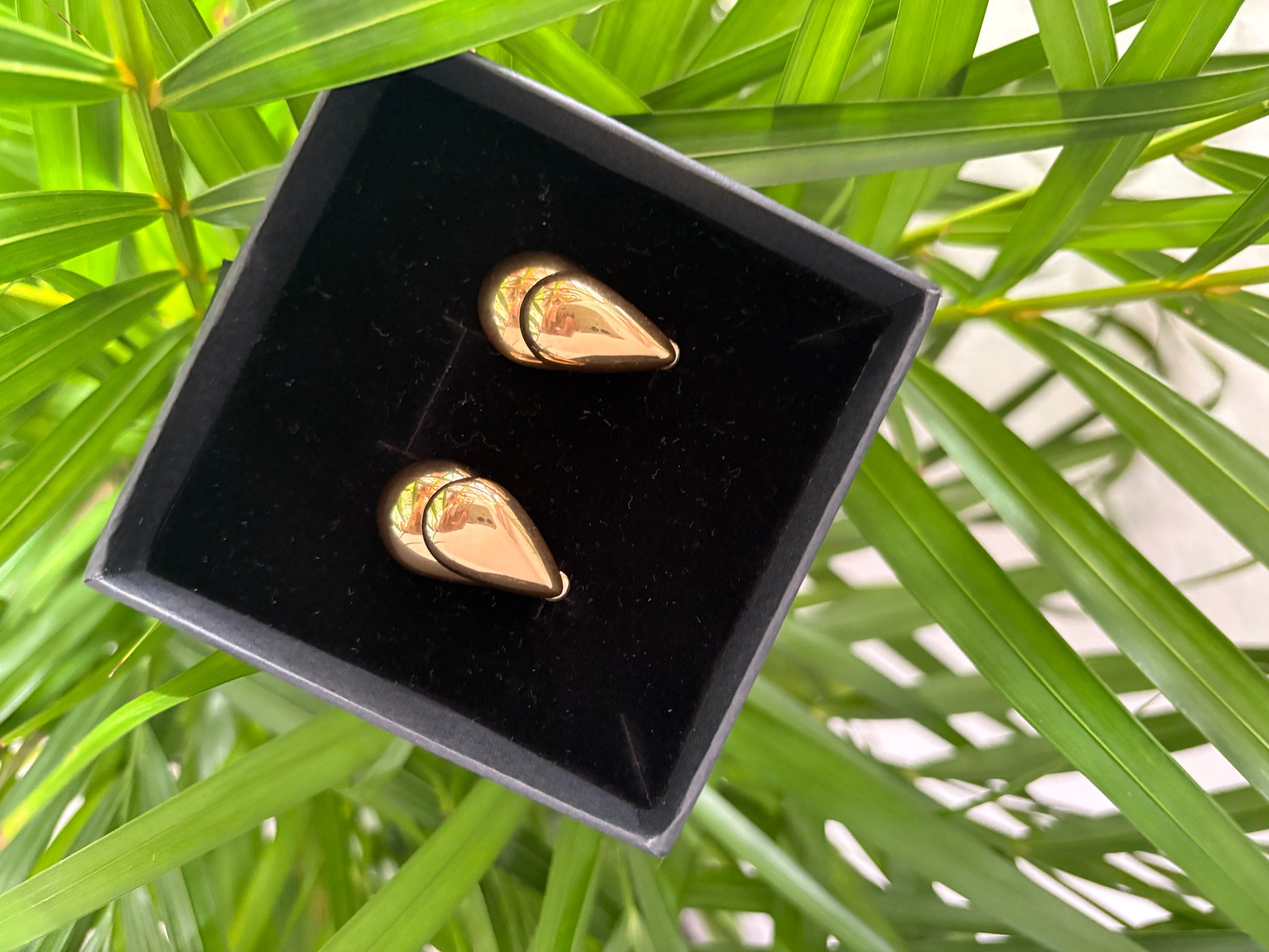 Die Ocean Tear Ohrstecker sind ein Statement für sich. Inspiriert von der sanften Form eines Wassertropfens, der in einem goldenen Glanz eingefangen wurde, verkörpern sie fließende Eleganz und Ruhe. Ihre voluminöse, tropfenförmige Silhouette ist modern und dennoch zeitlos, perfekt, um jedem Look einen Hauch von Wärme und Raffinesse zu verleihen.
